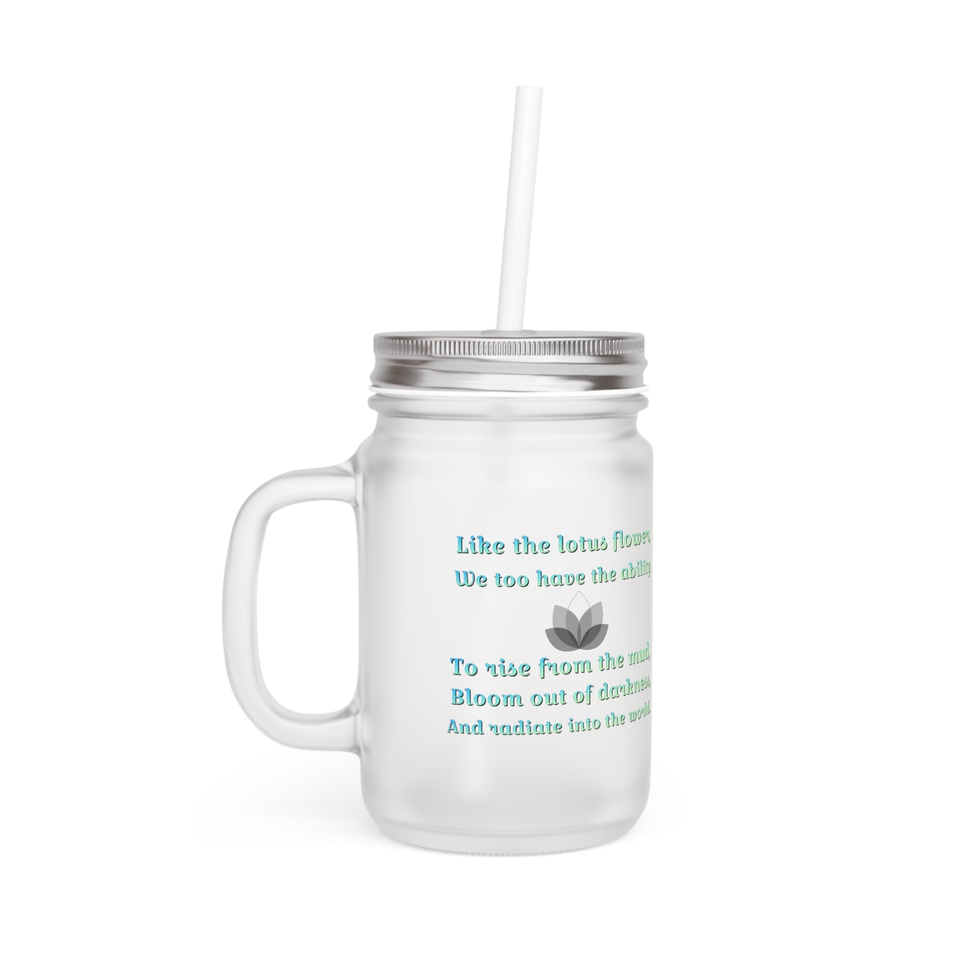 Elegant and serene lotus design mason jar perfect for serving soft drinks and cocktails. Ideal for picnics, trips, or everyday home use. Relevant to those who appreciate a touch of nature in their daily life. Suitable for parties, celebrations, or as a thoughtful gift for loved ones.