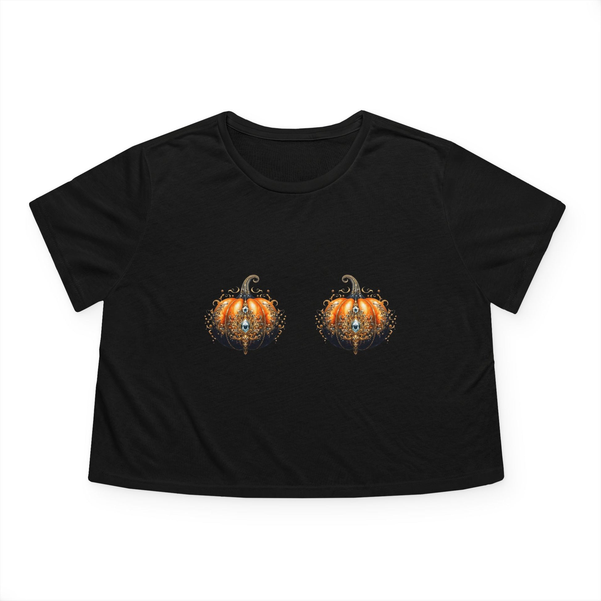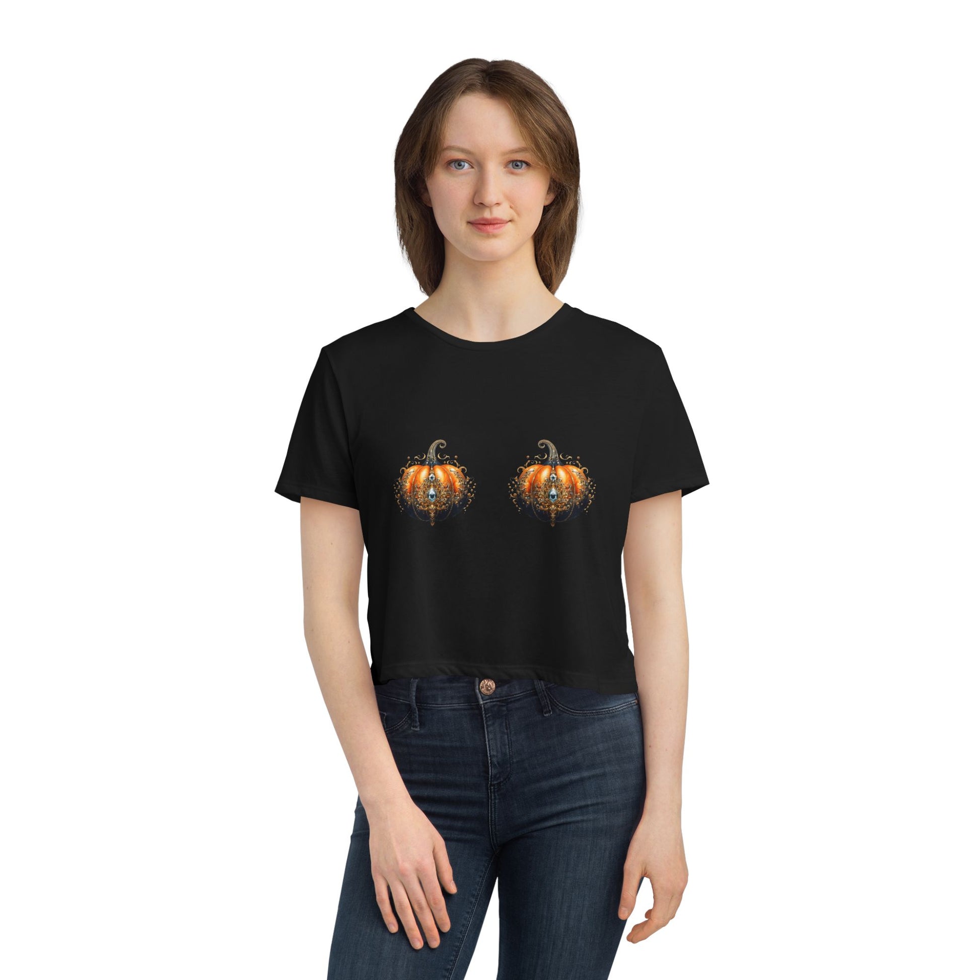 Pumpkin bra flowy crop tee perfect for a casual and trendy look. This tee is ideal for women looking for a stylish and comfortable top to wear during fall or Halloween festivities.