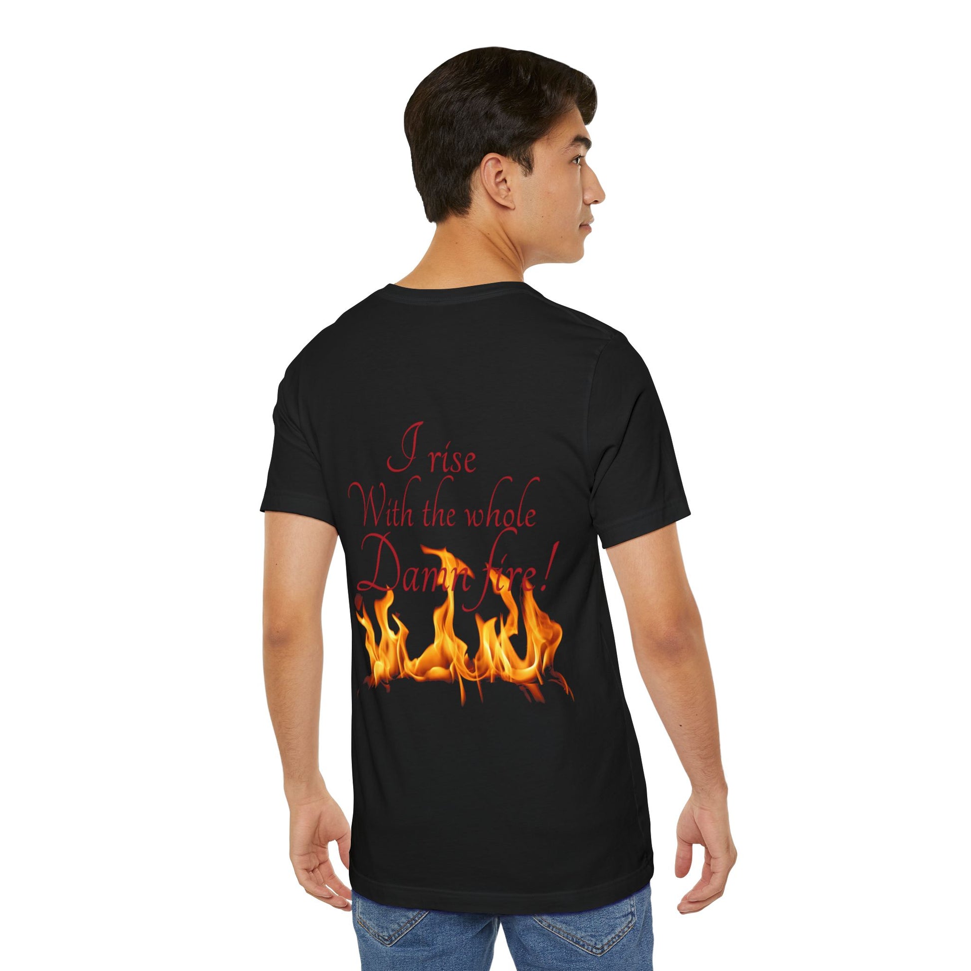 Rising Embers T-Shirt — “I Rise With the Whole Damn Fire” Flame Graphic Tee