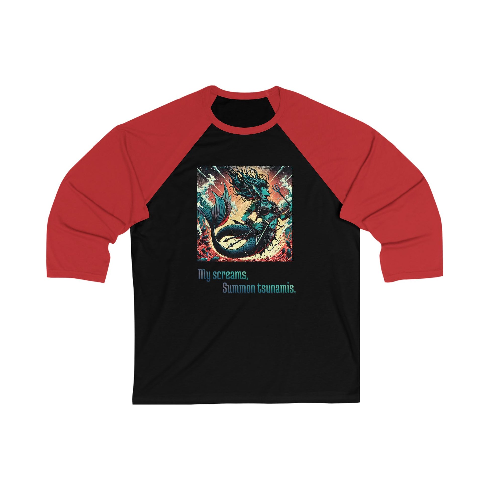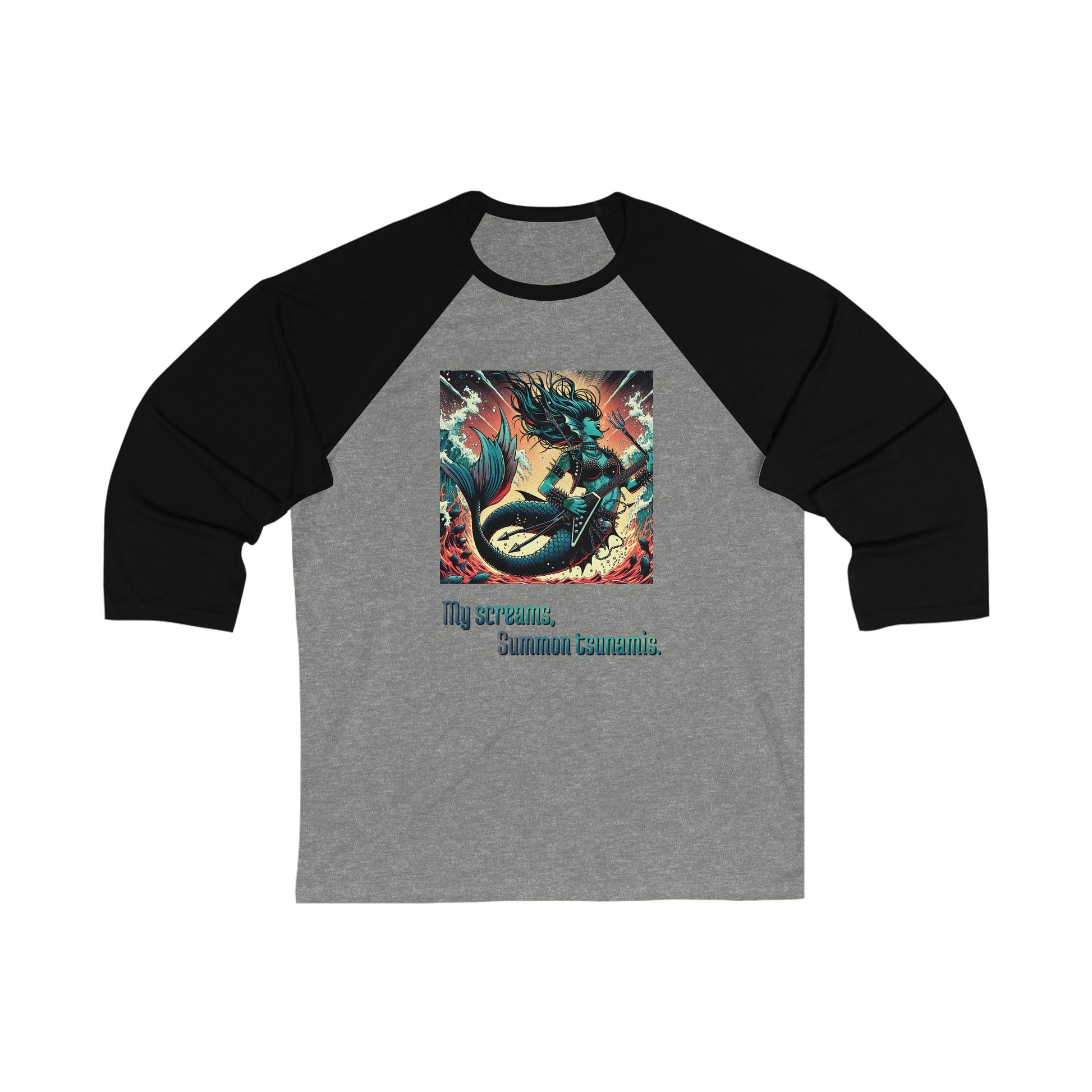 A screaming siren baseball tee that gives off a edgy and rebellious vibe. Perfect for those who love unique and bold designs. Ideal for casual wear and can be worn to music festivals or punk rock concerts.